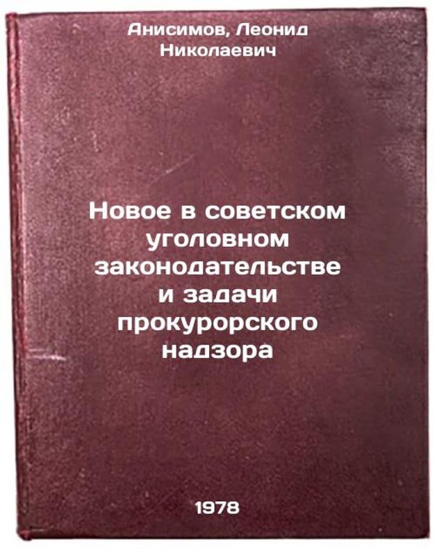 In Russian. Anisimov, Leonid Nikolaevich. New developments in Soviet criminal legislation and tasks of prosecutors supervision. Moscow: 1978 Novoe v sovetskom ugolovnom zakonodatelstve i zadachi prokurorskogo nadzora/New developments in Soviet criminal legislation and tasks of procuratorial supervision In Russian. All images are for identification of editions only. Several books of the same edition may be available. Please feel free to request photos of available books. SKU7619858