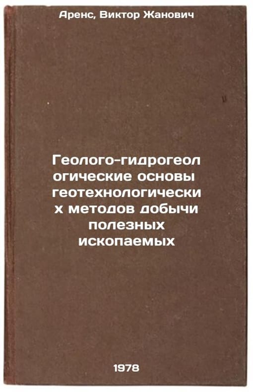 In Russian. Arens, Viktor Zhanovich. Geological and hydrogeological foundations of geotechnological methods of mining. Moscow: Nedra, 1978 Geologo-gidrogeologicheskie osnovy geotekhnologicheskikh metodov dobychi poleznykh iskopaemykh/Geological-hydrogeological foundations of geotechnological mining methods In Russian. All images are for identification of editions only. Several books of the same edition may be available. Please feel free to request photos of available books. SKU7620063