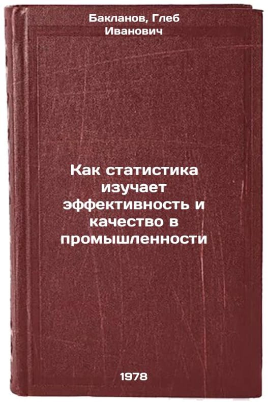 In Russian. Baklanov, Gleb Ivanovich. How statistics study efficiency and quality in industry. Moscow: Statistics, 1978 Kak statistika izuchaet effektivnost i kachestvo v promyshlennosti/How statistics study industrial efficiency and quality In Russian. All images are for identification of editions only. Several books of the same edition may be available. Please feel free to request photos of available books. SKU7620569