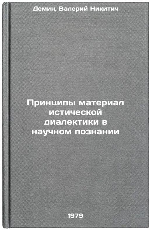 In Russian. Demin, Valery Nikitich. Principles of Material Dialectics in Scientific Knowledge. Moscow: Moscow State University Publishing House, 1979 Printsipy materialisticheskoy dialektiki v nauchnom poznanii/Principles of Material Dialectics in Scientific Cognition In Russian. All images are for identification of editions only. Several books of the same edition may be available. Please feel free to request photos of available books. SKU7621872