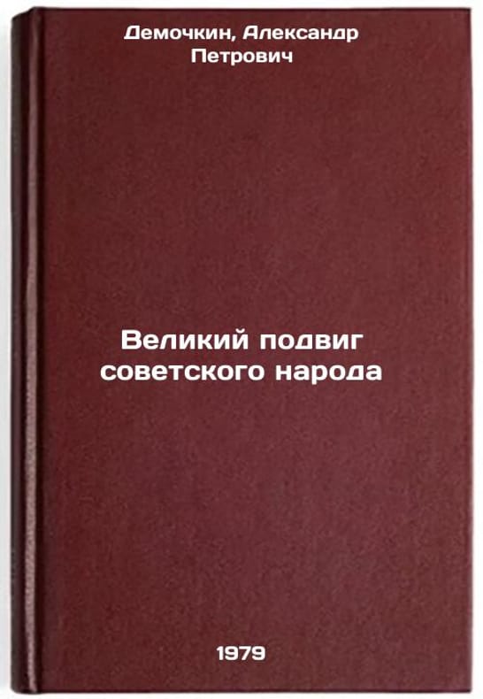"Short description: In Russian. Demochkin, Aleksandr Petrovich. Great feat of the Soviet people. Dushanbe: Knowledge of the TajSSR, 1979 All images are for identification of editions only. Several books of the same edition may be available. Please feel free to request photos of available books. SKU7621895"