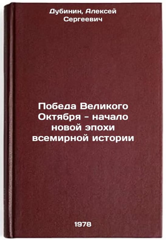 In Russian. Dubinin, Alexey Sergeevich. Victory of the Great October - the beginning of a new epoch of world history. Moscow: Knowledge, 1978 Pobeda Velikogo Oktyabrya - nachalo novoy epokhi vsemirnoy istorii/The victory of the Great October is the beginning of a new era of world history In Russian. All images are for identification of editions only. Several books of the same edition may be available. Please feel free to request photos of available books. SKU7622739