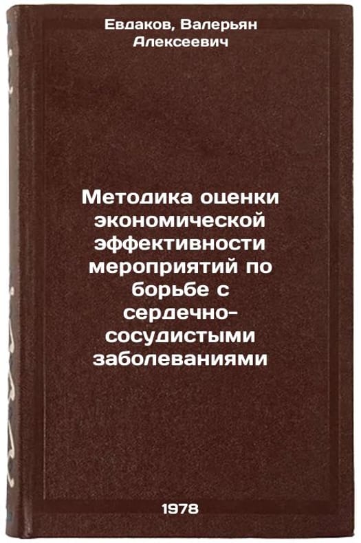In Russian. Evdakov, Valerian Alekseevich. Methodology for estimating the economic efficiency of measures to combat cardiovascular diseases. Moscow: COLIUV, 1978 Metodika otsenki ekonomicheskoy effektivnosti meropriyatiy po borbe s serdechno-sosudistymi zabolevaniyami/Methodology for assessing the cost-effectiveness of cardiovascular interventions In Russian. All images are for identification of editions only. Several books of the same edition may be available. Please feel free to request photos of available books. SKU7622936