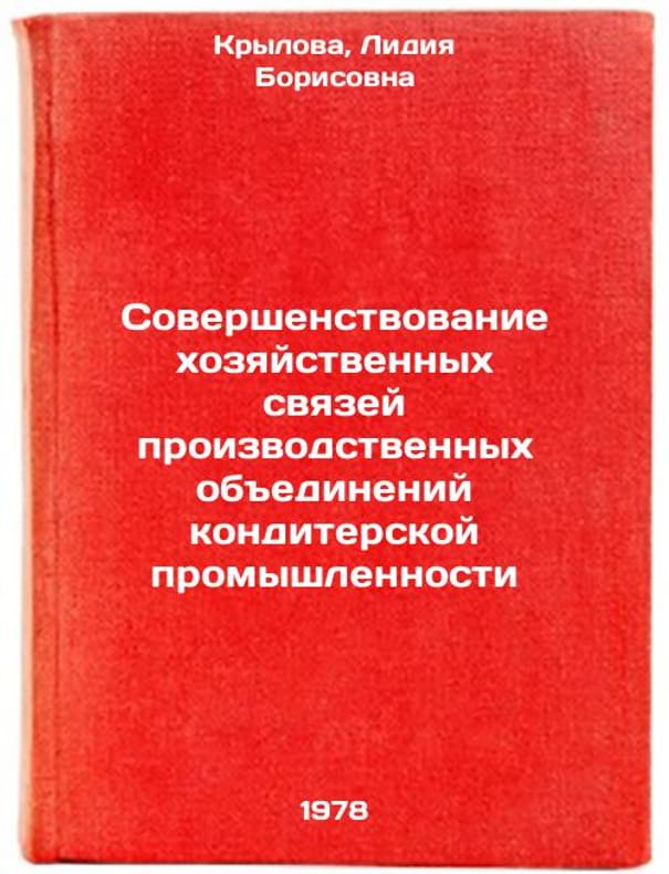 In Russian. Krylova, Lidia Borisovna. Improvement of economic relations between production associations of the confectionery industry. Moscow: TsNIITEpishprom, 1978 Sovershenstvovanie khozyaystvennykh svyazey proizvodstvennykh obedineniy konditerskoy promyshlennosti/Improving business linkages among confectionery production associations In Russian. All images are for identification of editions only. Several books of the same edition may be available. Please feel free to request photos of available books. SKU7624134