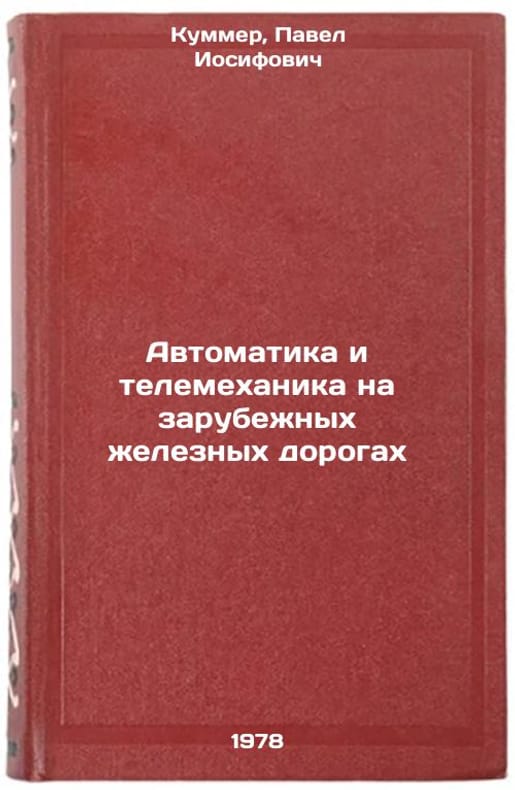 In Russian. Kummer, Pavel Iosifovich. Automation and telemechanics on foreign railways. Moscow: Transport, 1978 Avtomatika i telemekhanika na zarubezhnykh zheleznykh dorogakh/Automation and telemechanics on foreign railways In Russian. All images are for identification of editions only. Several books of the same edition may be available. Please feel free to request photos of available books. SKU7624604