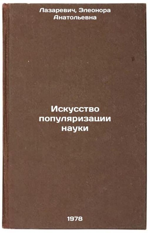 In Russian. Lazarevich, Eleanor Anatolievna. The Art of Popularizing Science. Moscow: Science, 1978 All images are for identification of editions only. Several books of the same edition may be available. Please feel free to request photos of available books. SKU7625022