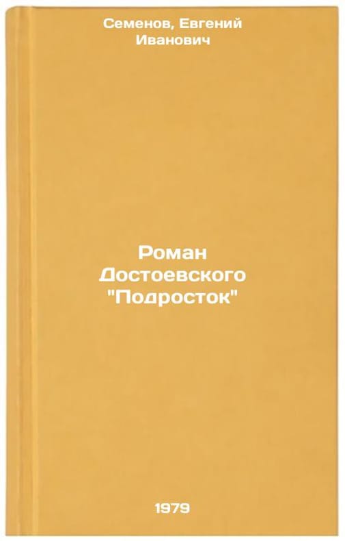 In Russian. Semenov, Evgeny Ivanovich. Dostoyevskys novel Teenager. Leningrad: Science. Leningrad Division, 1979 All images are for identification of editions only. Several books of the same edition may be available. Please feel free to request photos of available books. SKU7626600