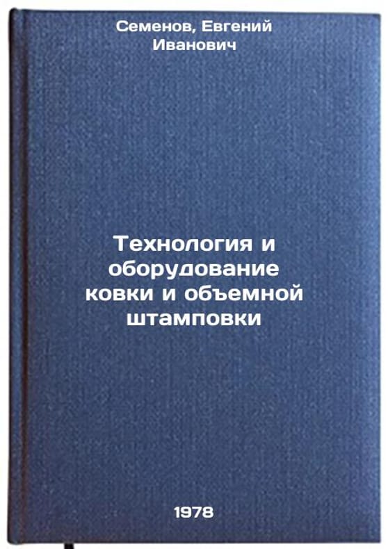 In Russian. Semyonov, Evgeny Ivanovich. Technology and equipment of forging and volumetric stamping. Moscow: Mechanical engineering, 1978 Tekhnologiya i oborudovanie kovki i obemnoy shtampovki/Forging and bulk stamping technology and equipment In Russian. All images are for identification of editions only. Several books of the same edition may be available. Please feel free to request photos of available books. SKU7626601