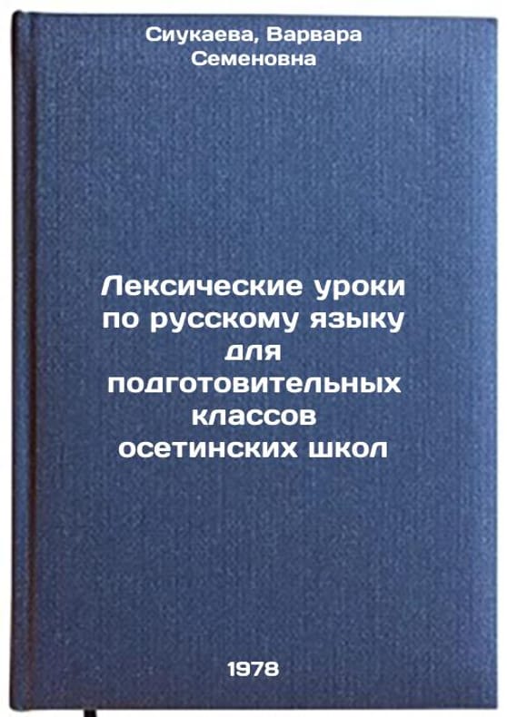 In Russian. Siukaeva, Varvara Semyonovna. Vocabulary lessons in Russian for the preparatory classes of Ossetian schools. Tskhinvali: Iryston, 1978 Leksicheskie uroki po russkomu yazyku dlya podgotovitelnykh klassov osetinskikh shkol/Vocabulary lessons in Russian for the preparatory classes of Ossetian schools In Russian. All images are for identification of editions only. Several books of the same edition may be available. Please feel free to request photos of available books. SKU7627124