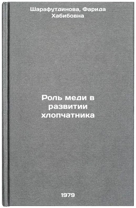 In Russian. Sharafutdinova, Farida Habibovna. The Role of Copper in the Development of Cotton. Tashkent: Fan, 1979 All images are for identification of editions only. Several books of the same edition may be available. Please feel free to request photos of available books. SKU7628538