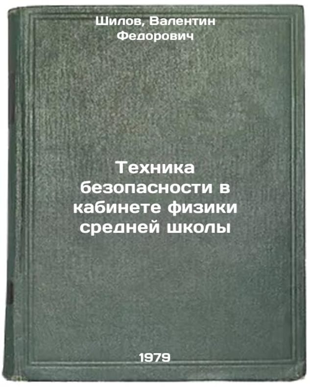 In Russian. Shilov, Valentin Fedorovich. Safety technology in the physics office of secondary school. Moscow: Enlightenment, 1979 Tekhnika bezopasnosti v kabinete fiziki sredney shkoly/Safety in a Secondary School Physics Room In Russian. All images are for identification of editions only. Several books of the same edition may be available. Please feel free to request photos of available books. SKU7628824