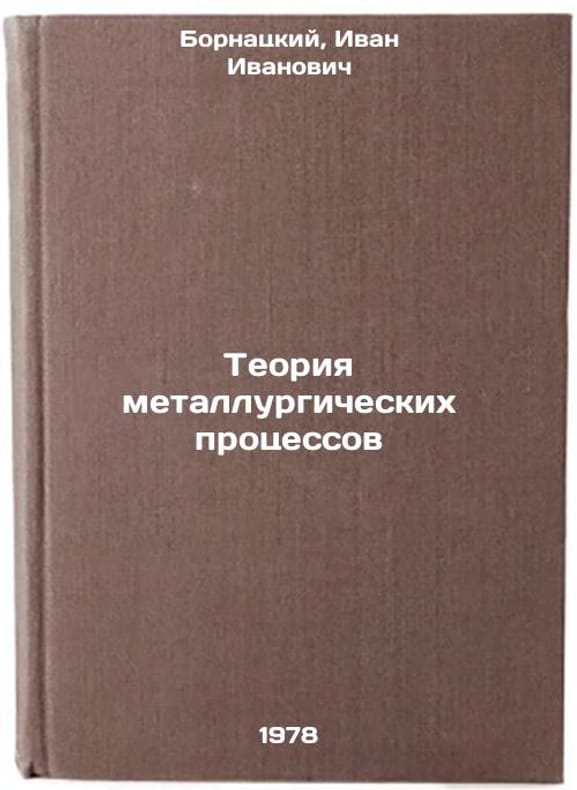 "In Russian. Bornatsky, Ivan Ivanovich. Theory of metallurgical processes. Kiev; Donetsk: Vishcha shkola, 1978 All images are for identification of editions only. Several books of the same edition may be available. Please feel free to request photos of available books. SKU7629628"