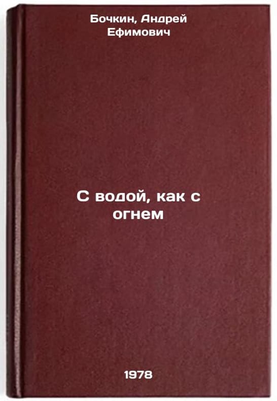 In Russian. Bochkin, Andrei Efimovich. With water as with fire. Moscow: Soviet Russia, 1978 All images are for identification of editions only. Several books of the same edition may be available. Please feel free to request photos of available books. SKU7629685