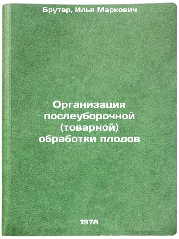 In Russian. Bruter, Ilya Markovich. Organization of post-harvest (commercial) processing of fruit. Chisinau: Map of Moldovenyasca, 1978 All images are for identification of editions only. Several books of the same edition may be available. Please feel free to request photos of available books.SKU7629864