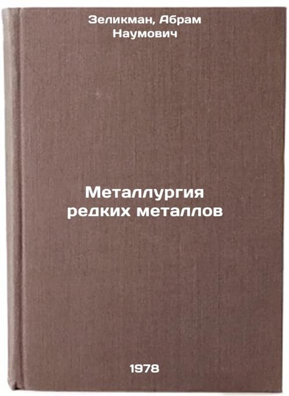 In Russian. Zelikman, Abram Naumovich. Metallurgy of rare metals. Moscow: Metallurgy, 1978 All images are for identification of editions only. Several books of the same edition may be available. Please feel free to request photos of available books. SKU7631136