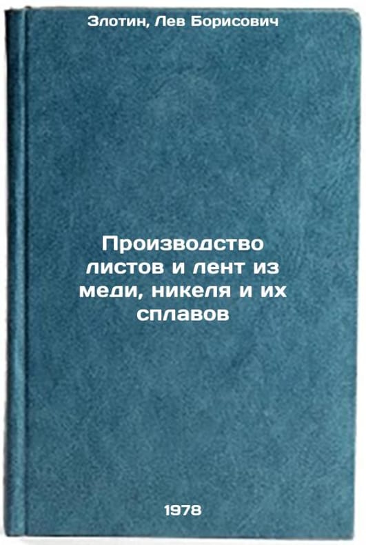 In Russian. Zlotin, Lev Borisovich. Production of sheets and tapes from copper, nickel and their alloys. Moscow: Metallurgy, 1978 Proizvodstvo listov i lent iz medi, nikelya i ikh splavov/Production of sheets and tapes of copper, nickel and their alloys In Russian. All images are for identification of editions only. Several books of the same edition may be available. Please feel free to request photos of available books. SKU7631223