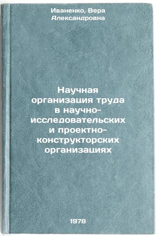 In Russian. Ivanenko, Vera Aleksandrovna. Scientific Organization of Labor in Research and Design Organizations. Kharkiv: KhGNBK, 1978 Nauchnaya organizatsiya truda v nauchno-issledovatelskikh i proektno-konstruktorskikh organizatsiyakh/Scientific Organization of Work in Research and Development Organizations In Russian. All images are for identification of editions only. Several books of the same edition may be available. Please feel free to request photos of available books. SKU7631460