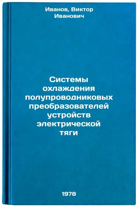 In Russian. Ivanov, Viktor Ivanovich. Cooling systems of semiconductor converters of electric traction devices. Moscow: Transport, 1978 Sistemy okhlazhdeniya poluprovodnikovykh preobrazovateley ustroystv elektricheskoy tyagi/Cooling systems for semiconductor converters of electric propulsion devices In Russian. All images are for identification of editions only. Several books of the same edition may be available. Please feel free to request photos of available books. SKU7631506