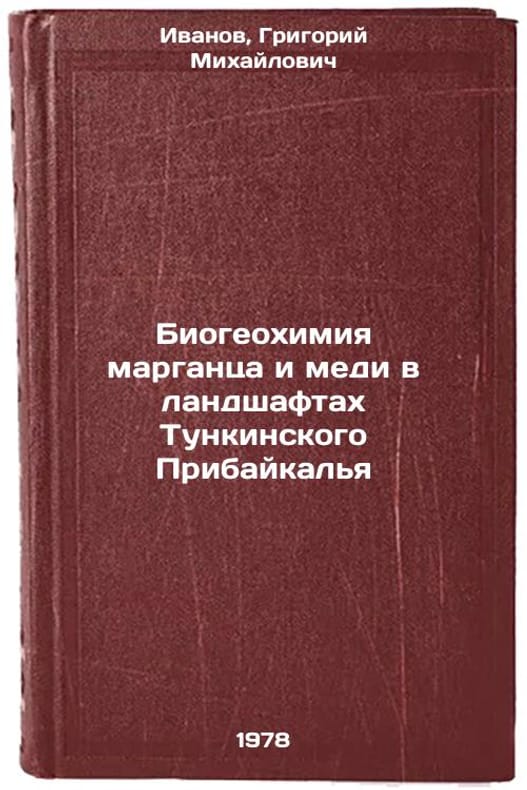 In Russian. Ivanov, Grigory Mikhailovich. Biogeochemistry of manganese and copper in the landscapes of the Tunkinsky Baykal region. Novosibirsk: Science. Sib. detachment, 1978 Biogeokhimiya margantsa i medi v landshaftakh Tunkinskogo Pribaykalya/Biogeochemistry of manganese and copper in the landscapes of the Tunkino Baikal region In Russian. All images are for identification of editions only. Several books of the same edition may be available. Please feel free to request photos of available books. SKU7631534