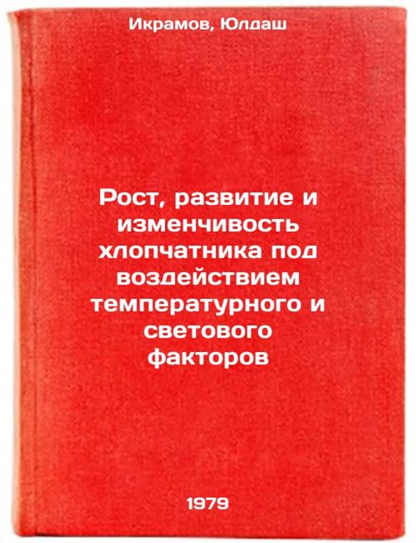 In Russian. Ikramov, Yuldash. The growth, development, and variability of cotton under the influence of temperature and light factors. Tashkent: Fan, 1979 Rost, razvitie i izmenchivost khlopchatnika pod vozdeystviem temperaturnogo i svetovogo faktorov/Cotton growth, development and variability due to temperature and light factors In Russian. All images are for identification of editions only. Several books of the same edition may be available. Please feel free to request photos of available books. SKU7631915