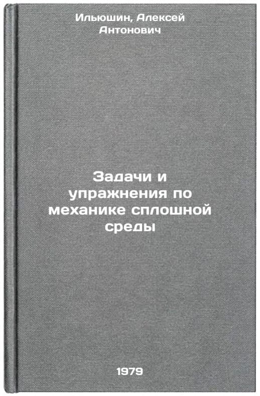 In Russian. Ilyushin, Alexey Antonovich. Tasks and exercises in solid environment mechanics. Moscow: Moscow State University Publishing House, 1979 Zadachi i uprazhneniya po mekhanike sploshnoy sredy/Tasks and exercises in solid environment mechanics In Russian. All images are for identification of editions only. Several books of the same edition may be available. Please feel free to request photos of available books. SKU7632005