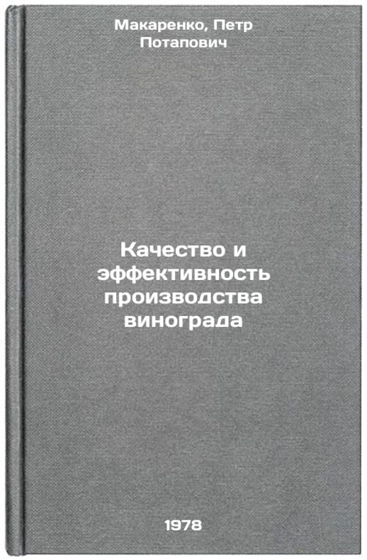 In Russian. Makarenko, Petr Potapovich. Quality and efficiency of grape production. Chisinau: Map of Moldovenyasca, 1978 All images are for identification of editions only. Several books of the same edition may be available. Please feel free to request photos of available books.SKU7633859
