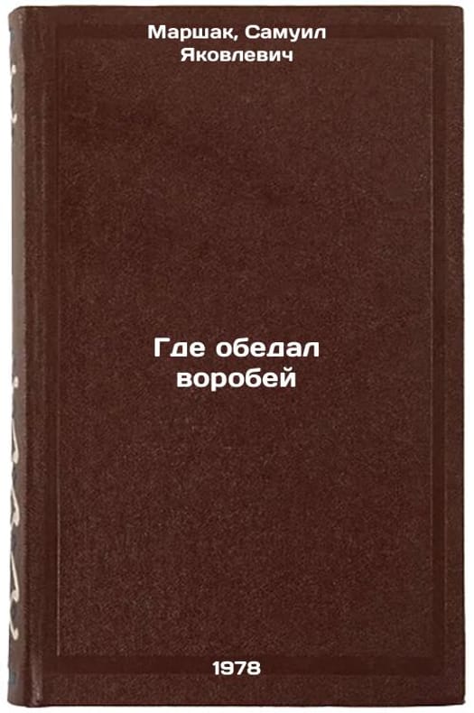 In Russian. Marshak, Samuel Yakovlevich. Where the sparrow dined. Moscow: Det. lit., 1978 All images are for identification of editions only. Several books of the same edition may be available. Please feel free to request photos of available books. SKU7634100