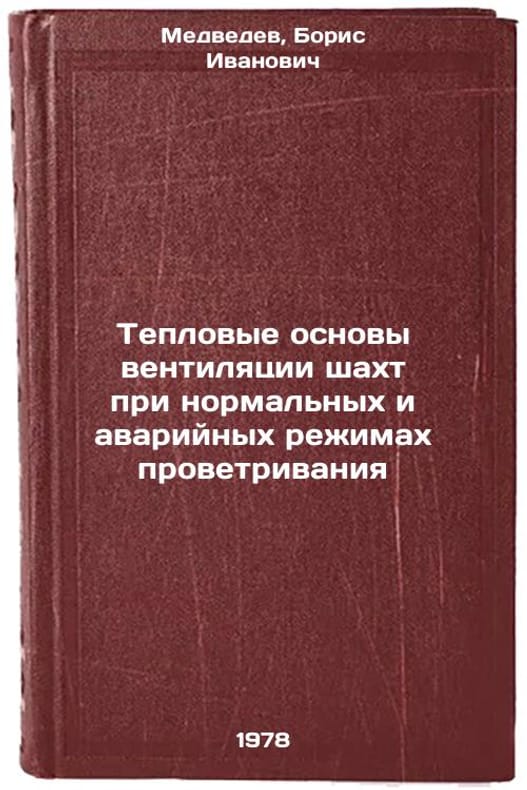 "In Russian. Medvedev, Boris Ivanovich. Thermal bases of mine ventilation under normal and emergency ventilation modes. Kiev; Donetsk: Vishcha shkola, 1978 Teplovye osnovy ventilyatsii shakht pri normalnykh i avariynykh rezhimakh provetrivaniya/Thermal bases of ventilation in mines under normal and emergency ventilation conditions In Russian. All images are for identification of editions only. Several books of the same edition may be available. Please feel free to request photos of available books. SKU7634239"