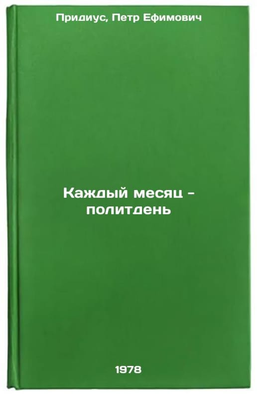 In Russian. Pridius, Pyotr Efimovich. Every month is a political day. Krasnodar: Book of Books, 1978 All images are for identification of editions only. Several books of the same edition may be available. Please feel free to request photos of available books. SKU7635874