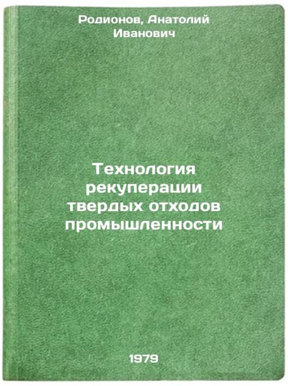 In Russian. Rodionov, Anatoly Ivanovich. The Technology of Recovery of Industrial Solid Waste. Moscow: MHTI, 1979 Tekhnologiya rekuperatsii tverdykh otkhodov promyshlennosti/Industrial Solid Waste Recovery Technology In Russian. All images are for identification of editions only. Several books of the same edition may be available. Please feel free to request photos of available books. SKU7636200
