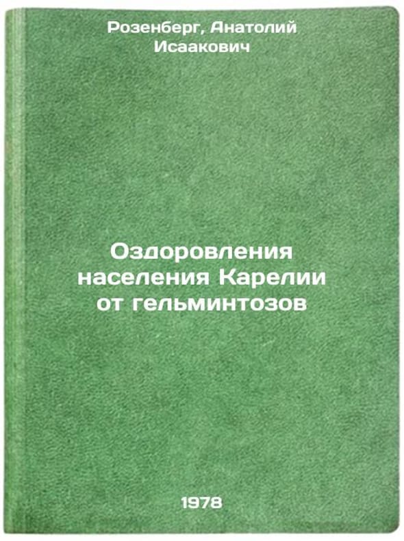 In Russian. Rosenberg, Anatoly Isaakovich. Healing the population of Karelia from worms. Petrozavodsk: Karelia, 1978 Ozdorovleniya naseleniya Karelii ot gelmintozov/Healing the Karelian population from worm disease In Russian. All images are for identification of editions only. Several books of the same edition may be available. Please feel free to request photos of available books. SKU7636270