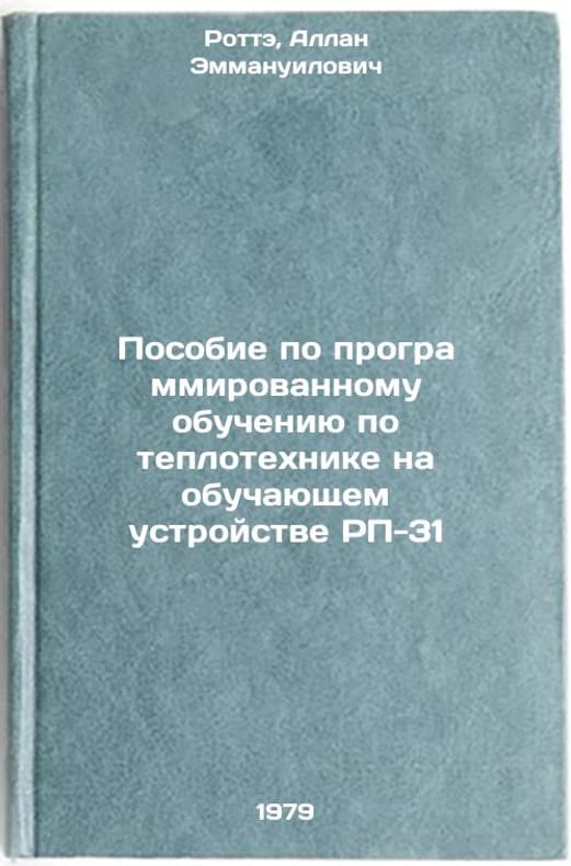 In Russian. Rotte, Allan Emmanuel. Manual on programmed training in heat engineering on the training device RP-31. Moscow: VISIS, 1979 Posobie po programmirovannomu obucheniyu po teplotekhnike na obuchayushchem ustroystve RP-31/Manual for programmed training in heat engineering on the training device PP-31 In Russian. All images are for identification of editions only. Several books of the same edition may be available. Please feel free to request photos of available books. SKU7636624