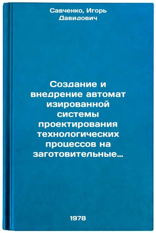 In Russian. Savchenko, Igor Davidovich. Creation and implementation of an automated system for designing technological processes for procurement operations using computers. Leningrad: LDNTP, 1978 Sozdanie i vnedrenie avtomatizirovannoy sistemy proektirovaniya tekhnologicheskikh protsessov na zagotovitelnye raboty s ispolzovaniem EVM/Creation and implementation of an automated system for designing technological processes for procurement with the use of computers In Russian. All images are for identification of editions only. Several books of the same edition may be available. Please feel free to request photos of available books. SKU7637170