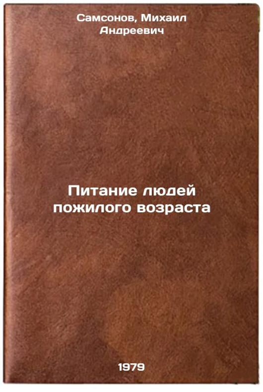 In Russian. Samsonov, Mikhail Andreevich. Nutrition for the Elderly. Moscow: Medicine, 1979 All images are for identification of editions only. Several books of the same edition may be available. Please feel free to request photos of available books. SKU7637292