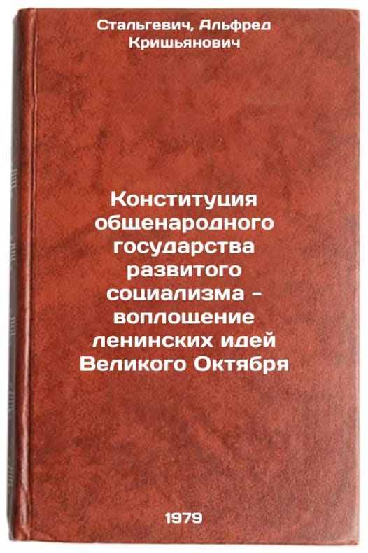 In Russian. Stalgevich, Alfred Krishyanovich. The Constitution of the Peoples State of Developed Socialism - the embodiment of Lenins ideas of the Great October. Moscow: Akad. Ministry of Internal Affairs of the USSR, 1979 Konstitutsiya obshchenarodnogo gosudarstva razvitogo sotsializma - voploshchenie leninskikh idey Velikogo Oktyabrya/The Constitution of the peoples state of advanced socialism - the embodiment of Lenins ideas of the Great October In Russian. All images are for identification of editions only. Several books of the same edition may be available. Please feel free to request photos of available books. SKU7637569