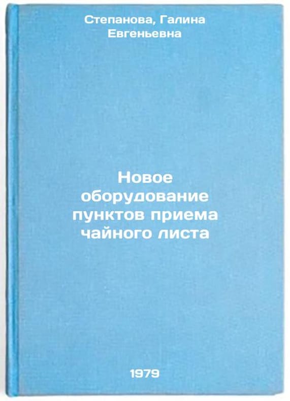In Russian. Stepanova, Galina Evgenyevna. New equipment for tea leaf reception points. Tbilisi: GruzNIINTI, 1979 Novoe oborudovanie punktov priema chaynogo lista/New equipment for tea-leaf reception points In Russian. All images are for identification of editions only. Several books of the same edition may be available. Please feel free to request photos of available books. SKU7637727