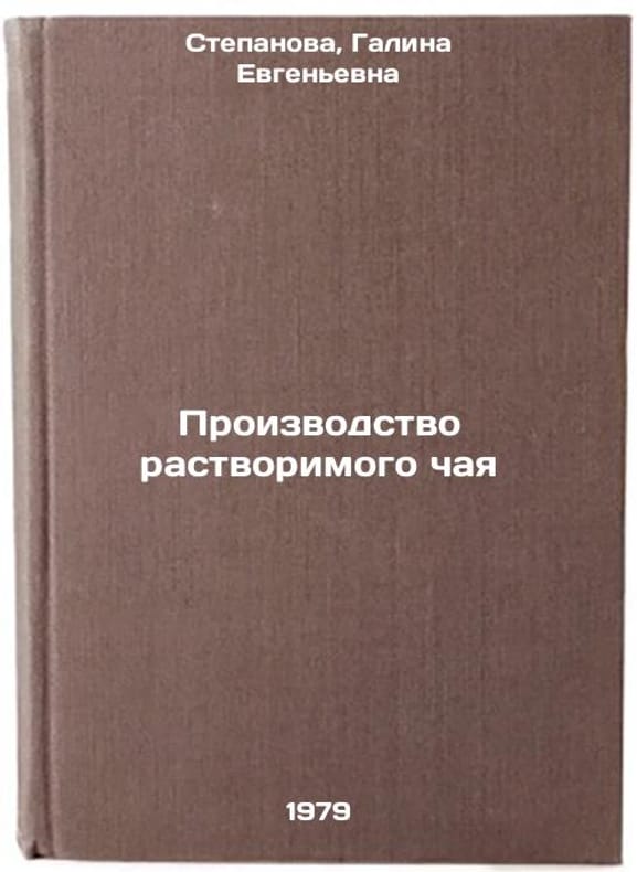 In Russian. Stepanova, Galina Evgenyevna. Soluble tea production. Tbilisi: GruzNIINTI, 1979 All images are for identification of editions only. Several books of the same edition may be available. Please feel free to request photos of available books. SKU7637730