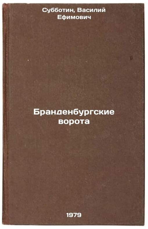 In Russian. Subbotin, Vasily Efimovich. Brandenburg Gate. Moscow: Pravda, 1979 All images are for identification of editions only. Several books of the same edition may be available. Please feel free to request photos of available books. SKU7637993