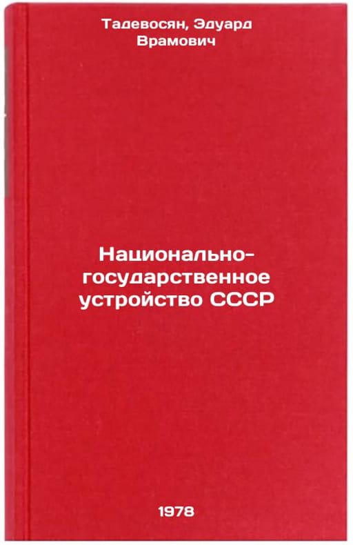 In Russian. Tadevosyan, Eduard Vramovich. The National-State System of the USSR. Moscow: Znanie, 1978 Natsionalno-gosudarstvennoe ustroystvo SSSR/The National-State Structure of the USSR In Russian. All images are for identification of editions only. Several books of the same edition may be available. Please feel free to request photos of available books. SKU7638313