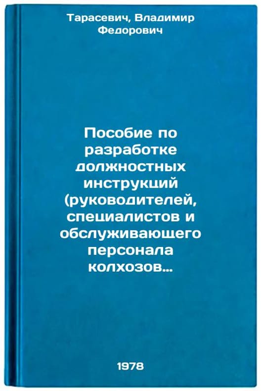 In Russian. Tarasevich, Vladimir Fedorovich. Manual for the development of job descriptions (managers, specialists and service personnel of collective farms of the Belarusian SSR). Minsk: Uradzhai, 1978 Posobie po razrabotke dolzhnostnykh instruktsiy (rukovoditeley, spetsialistov i obsluzhivayushchego personala kolkhozov Belorusskoy SSR)/Manual for the development of job descriptions (managers, specialists and service personnel of collective farms of the Belarusian SSR) In Russian. All images are for identification of editions only. Several books of the same edition may be available. Please feel free to request photos of available books. SKU7638395