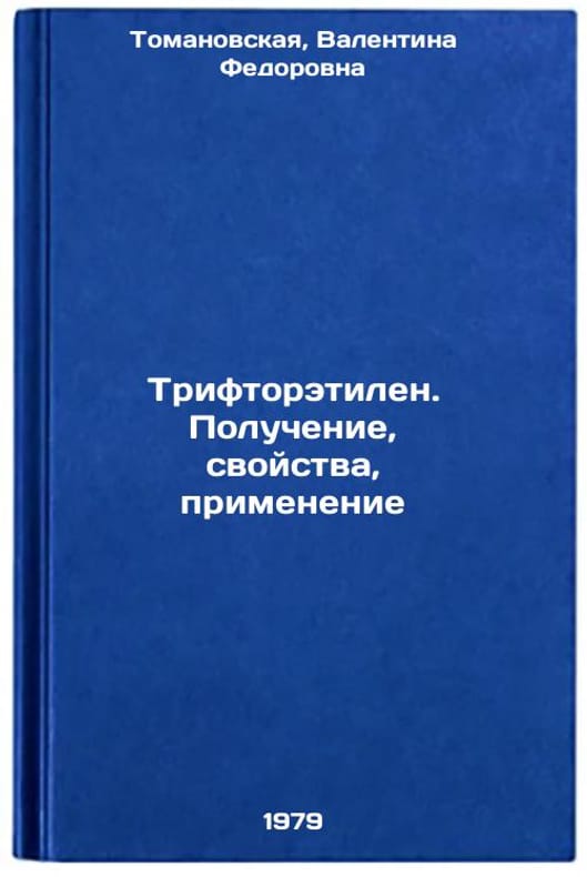 In Russian. Tomanovskaya, Valentina Fedorovna. Trifluoroethylene. Obtaining, properties, application. Moscow: NIITEKhim, 1979 Triftoretilen. Poluchenie, svoystva, primenenie/Trifluoroethylene. Obtaining, properties, applications In Russian. All images are for identification of editions only. Several books of the same edition may be available. Please feel free to request photos of available books. SKU7639451