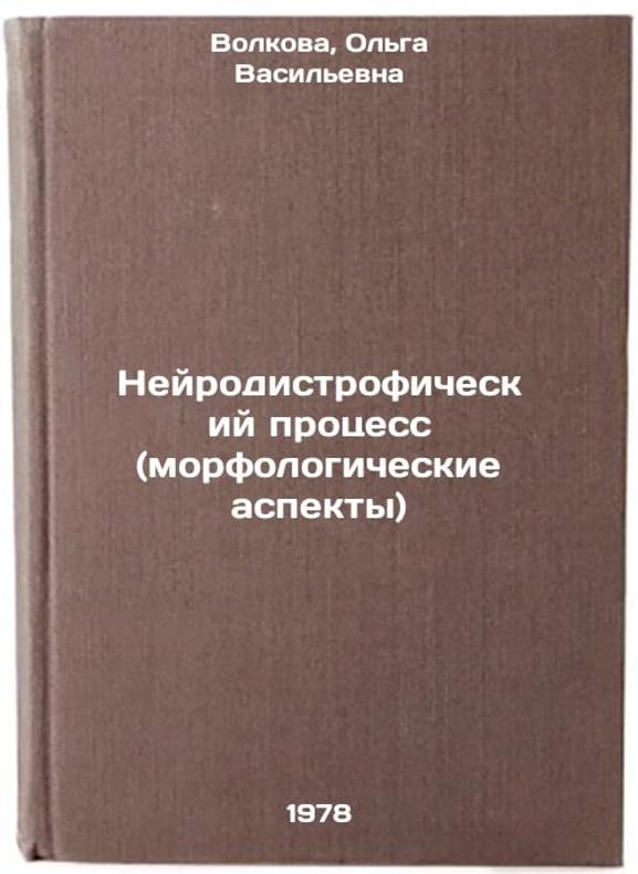 In Russian. Volkova, Olga Vasilyevna. Neurostrophic process (morphological aspects). Moscow: Medicine, 1978 Neyrodistroficheskiy protsess (morfologicheskie aspekty)/Neurostrophic process (morphological aspects) In Russian. All images are for identification of editions only. Several books of the same edition may be available. Please feel free to request photos of available books. SKU7641384