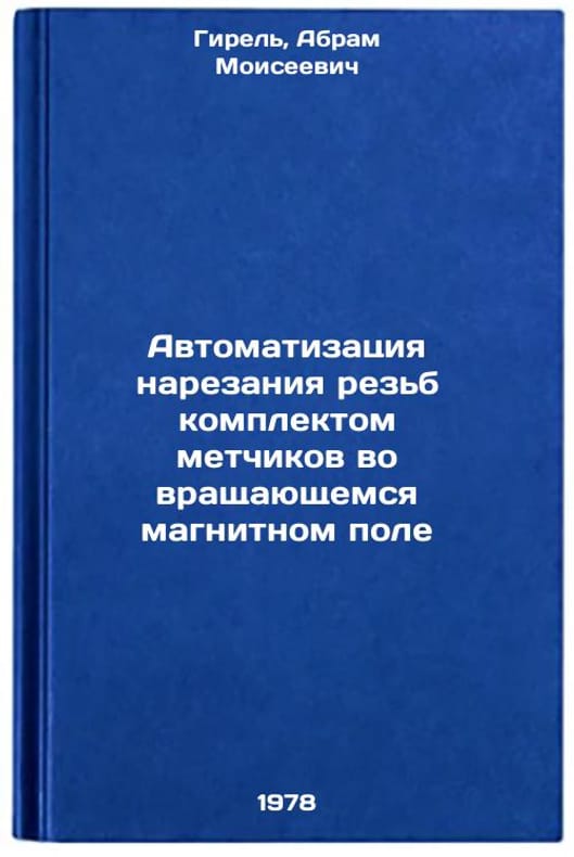 In Russian. Girel, Abram Moiseevich. Automation of thread cutting by a set of treads in a rotating magnetic field. Moscow: NIIMash, 1978 Avtomatizatsiya narezaniya rezb komplektom metchikov vo vrashchayushchemsya magnitnom pole/Automation of thread cutting by a set of taps in a rotating magnetic field In Russian. All images are for identification of editions only. Several books of the same edition may be available. Please feel free to request photos of available books. SKU7642617