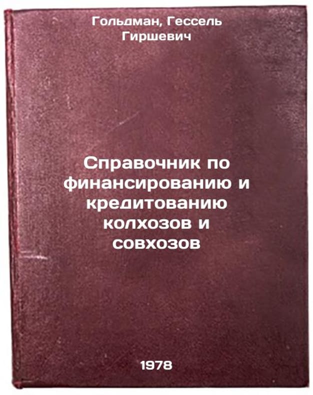 In Russian. Goldman, Gessel Hirshevich. Guide to financing and lending of collective farms and state farms. Minsk: Uradzhai, 1978 Spravochnik po finansirovaniyu i kreditovaniyu kolkhozov i sovkhozov/Guide to financing and crediting kolkhozes and state farms In Russian. All images are for identification of editions only. Several books of the same edition may be available. Please feel free to request photos of available books. SKU7643018