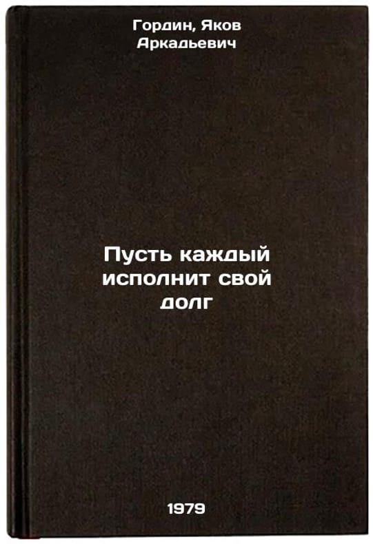 In Russian. Gordin, Yakov Arkadyevich. Let everyone do their duty. Moscow: Det. lit., 1979 All images are for identification of editions only. Several books of the same edition may be available. Please feel free to request photos of available books. SKU7643175