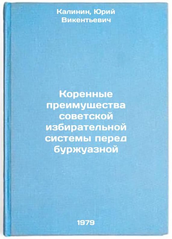 In Russian. Kalinin, Yuri Vikentyevich. The fundamental advantages of the Soviet electoral system over the bourgeois one. Minsk: Znanie of the BSSR, 1979 Korennye preimushchestva sovetskoy izbiratelnoy sistemy pered burzhuaznoy/The fundamental advantages of the Soviet electoral system over the bourgeois system In Russian. All images are for identification of editions only. Several books of the same edition may be available. Please feel free to request photos of available books. SKU7643356