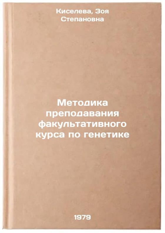 In Russian. Kiseleva, Zoya Stepanovna. Methodology of teaching an optional course on genetics. Moscow: Enlightenment, 1979 Metodika prepodavaniya fakultativnogo kursa po genetike/Methodology of teaching an elective course in genetics In Russian. All images are for identification of editions only. Several books of the same edition may be available. Please feel free to request photos of available books. SKU7644224