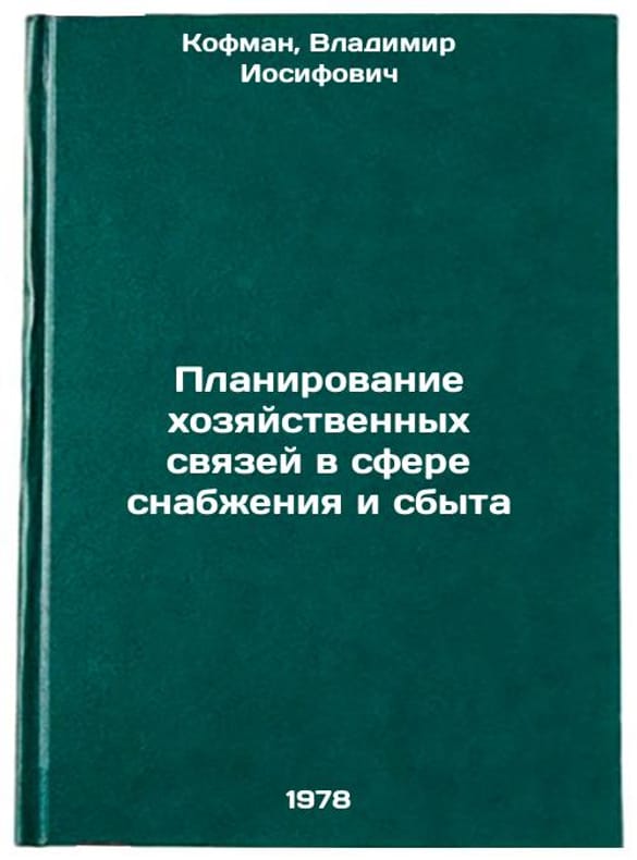 In Russian. Kofman, Vladimir Iosifovich. Planning of economic relations in the sphere of supply and sales. Sverdlovsk: Ural State University, 1978 Planirovanie khozyaystvennykh svyazey v sfere snabzheniya i sbyta/Supply and marketing linkage planning In Russian. All images are for identification of editions only. Several books of the same edition may be available. Please feel free to request photos of available books. SKU7645084