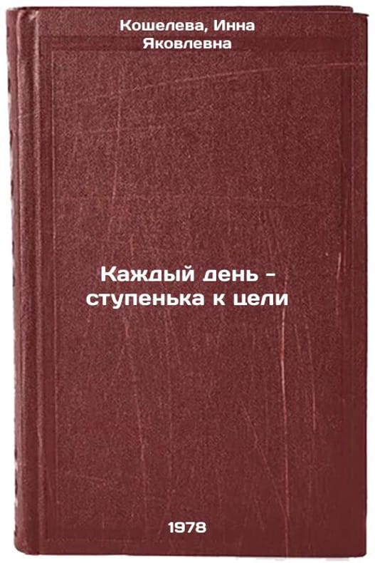 In Russian. Kosheleva, Inna Yakovlevna. Every day is a stepping stone to a goal. Moscow: Znanie, 1978 All images are for identification of editions only. Several books of the same edition may be available. Please feel free to request photos of available books. SKU7645143