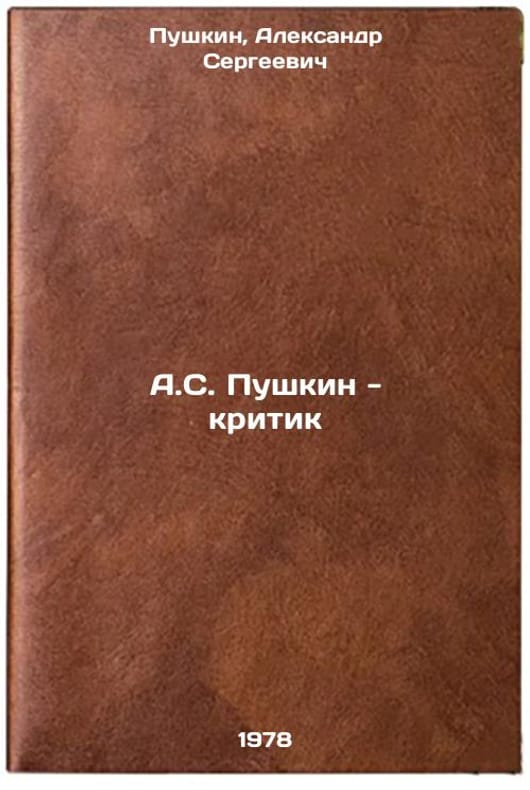 In Russian. Pushkin, Alexander Sergeevich. A.S. Pushkin - Critic. Moscow: Soviet Russia, 1978 All images are for identification of editions only. Several books of the same edition may be available. Please feel free to request photos of available books. SKU7646328